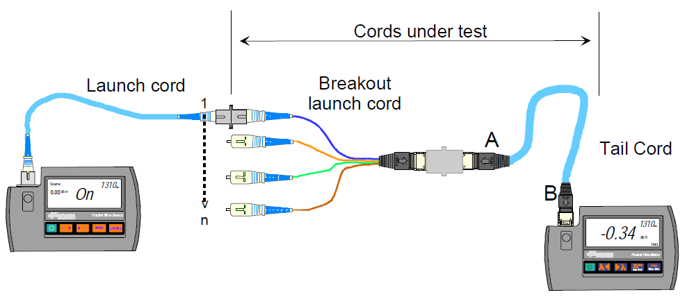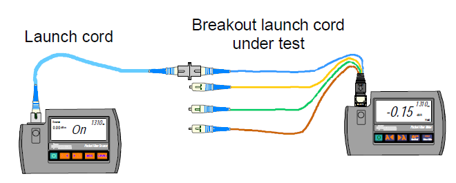 3.将分支跳线连接到单根光纤跳线和功率计。