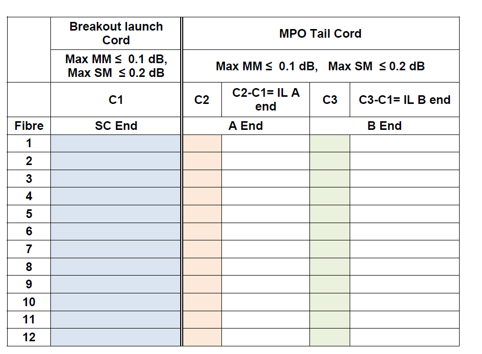 5.测量并记录所有断线连接器的IL。参考下表1中的C1栏。