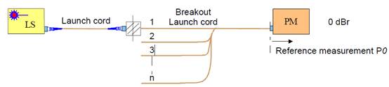 1. 将“分支测试延长线连接到单芯”测试延长线和功率计。设置参考值。