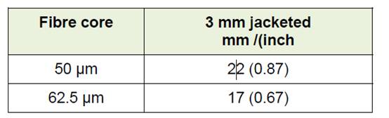 表1,3毫米测试延长线的芯轴直径