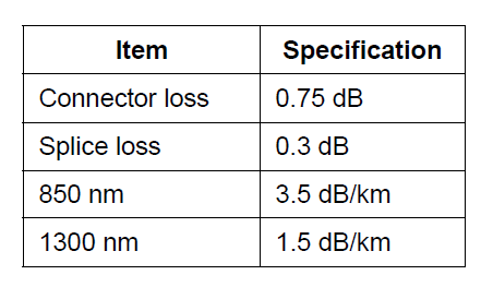 850 nm时的最大IL = 3.5L + 0.3N + 0.75C